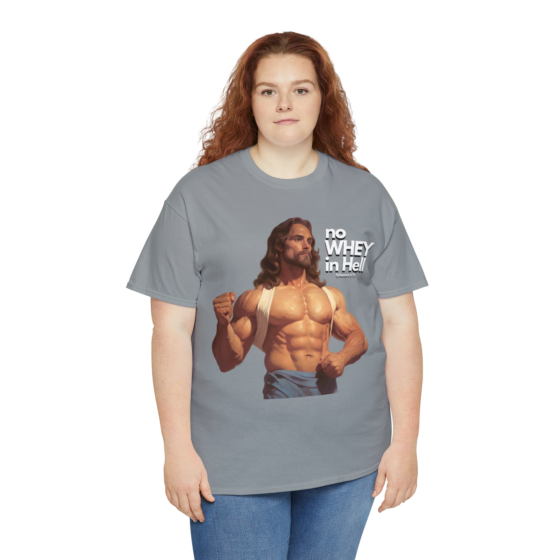 No WHEY in Hell - Body Builder Jesus Divine Strength (Ephesians 6:10) Unisex Heavy Cotton Tee